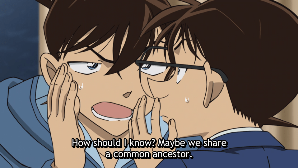 The fact that Shinichi and Kaito still don’t understand why they look so much a like is funny to me. Given the common ancestor comment, they should really have a conversation with their parents.